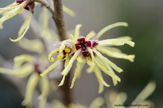 Clusters of blooms composed of narrow, curiously twisted petals release a sweet scent in January and February, along with yellow and orange autumn foliage. Witch hazels are happy in full sun or partial shade. Prefers a well-drained, neutral-to-acidic soil, so use ericaceous compost in a pot.