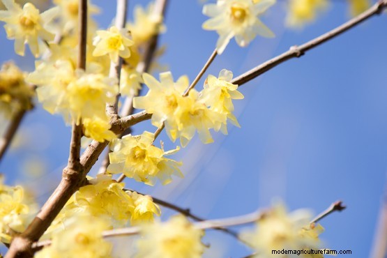 Wintersweet has bare, greyish branches that carry fat yellow buds opening to waxy, translucent blooms. They exude an intense perfume that wafts through the garden in January and February. Grow in full sun in multi-purpose compost.