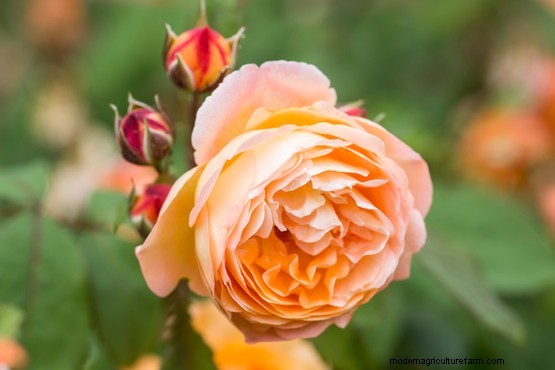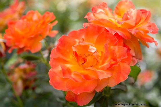 Orange roses come in a range of hues, varying in intensity. Some of the lighter cultivars are tinged with pink or yellow, making them ideal for delicate, subtle colour schemes. The deepest orange roses border on red, bringing heat and drama to border designs.