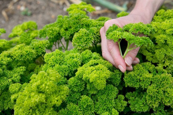 Parsley is a biennial herb, but it’s best to grow it as an annual, sowing seed every few weeks. Unlike most herbs, it’s best to grow parsley in partial shade, where it’s less likely to bolt into flower. Parsley has many culinary uses, working particularly well in soups and stews.