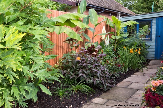- Musa × paradisiaca ‘Rajapuri’- a hardy cultivar that copes well with wind. With rich green leaves, it may also produce edible fruits in the right conditions. Height 2.4m (8ft)