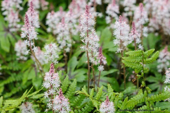 Foamflower, Tiarella, is the less well known, and far less fashionable, cousin of Heuchera. Like Heuchera, it’s a genus of shade-loving plants, bearing masses of gorgeous flower spikes in pink or white. They thrive in nutrient-poor soils and can cope with being waterlogged. What’s not to like?