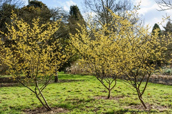 - Hamamelis x intermedia – a cross between Chinese witch hazel (Hamamelis mollis) and Japanese witch hazel (Hamamelis japonica), Hamamelis ‘Savill Starlight’ has yellow flowers in late winter, and good autumn leaf colour