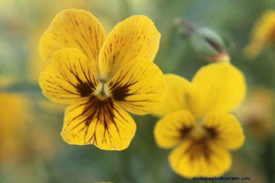 - Viola x wittrockiana ‘Tiger Eyes’ – an annual bedding pansy. Larger than the species violas, many of the hybrid cultivars have been bred to bloom throughout winter