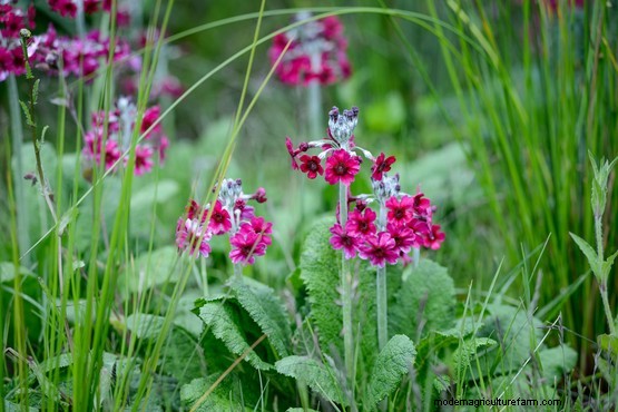 The mealy primrose, Primula pulverulenta is a gorgeous species bearing wine-red flowers from late spring to midsummer. Considered one of the easiest primulas to grow, it needs reliably moist soil, for example boggy soil, in full sun or partial shade.