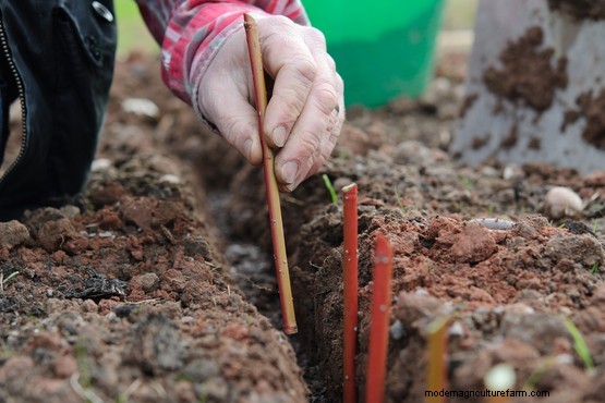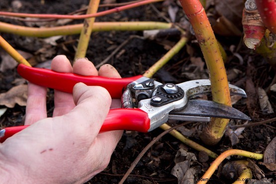 Cornus sanguinea, Cornus stolonifera, Cornus alba and Cornus sibirica strike well from hardwood cuttings taken in winter. Wait until all the leaves have fallen and then with a sharp and clean pair of secateurs remove a stem of pencil thickness. Cut the stem into lengths 15cm long. Make sure you know which is the bottom of each cutting. An easy way to avoid mistakes is to cut just above a bud at the top of the cutting at an angle.