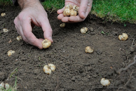 Bulbs should be planted in September and October. Plant the large bulbs of Fritillaria imperialis deeply to ensure flowering – around 30cm below the surface.