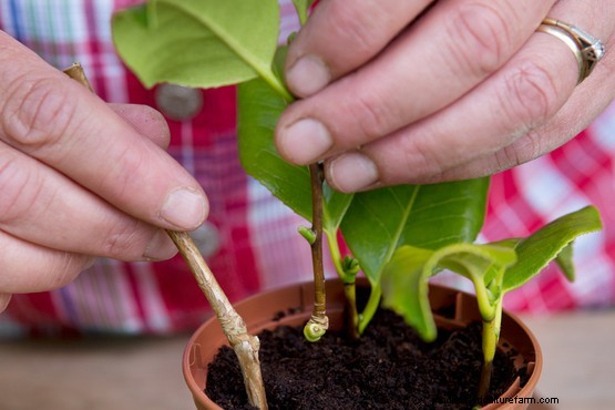 Make sure there are plenty of holes in the base of your pot and add crocks to improve drainage. Fill your pot about two-thirds full with ericaceous compost, leaving enough room for your plant.