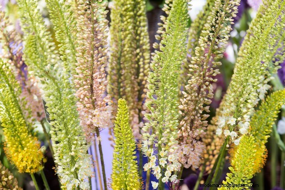 - Eremurus stenophyllus – warm yellow flowers from June to July on spikes 1.5m