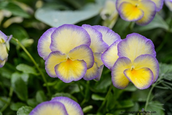 Violas grow best in leafy, humus-rich soil, with some shade during summer. They don’t fare well in hot conditions, which can lead to aphid infestations, especially when watering is neglected.