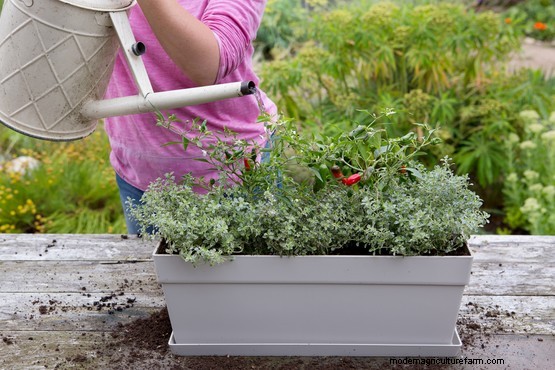 Grow it: Make sure the trough has plenty of drainage holes in the base. Half-fill it with a free-draining soil-based compost, such as John Innes No. 2. Remove the plants from their pots, then position one thyme at each end and one in the middle, and the two chillies at the back. Fill around them with compost and firm in gently. Water well and place on a warm windowsill. Water weekly and feed the chillies with tomato feed fortnightly. Pick the chillies when they turn red.