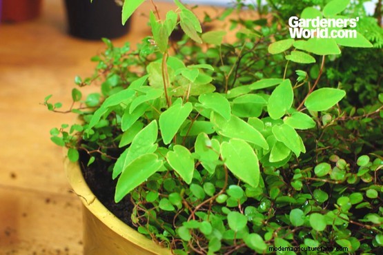 The maidenhair vine, Muehlenbeckia complexa is a popular houseplant but it’s frost hardy so can be grown outdoors all year in many locations. Alternatives to consider include ivy ‘Halebob’ or small ferns and dwarf hostas like Asplenium trichomanes or ‘Frosted Mouse Ears’.