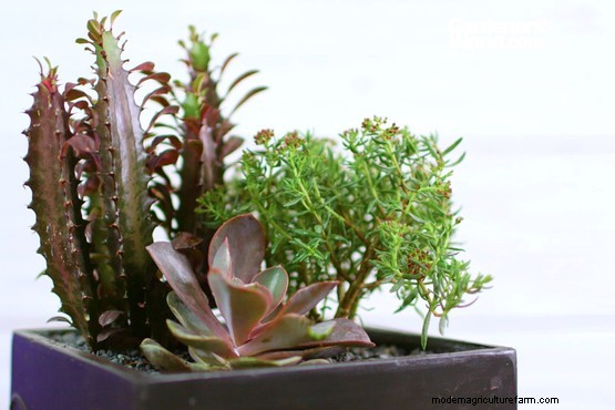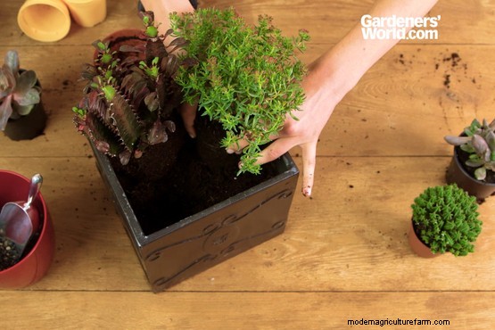 Once you have planted you pot, place it a sunny area of the garden. Ensure the container doesn’t become waterlogged, as this can cause the plants to rot. The gravel mulch is both decorative and helps to ensure water doesn’t splash on to the plants, which would make them more likely to rot.