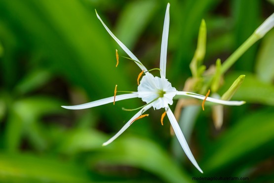 White Hymenocallis speciosa flower. Photo: Getty Images.Spider lilies, Hymenocallis, are exotic bulbs native to southern parts of North America, northern parts of South America, Central America and the Caribbean. These tender, bulbous perennials can be grown in containers in conservatories, where they’ll exude a heady fragrance. Spider lilies to try growing include Hymenocallis littoralis and Hymenocallis x festalis.