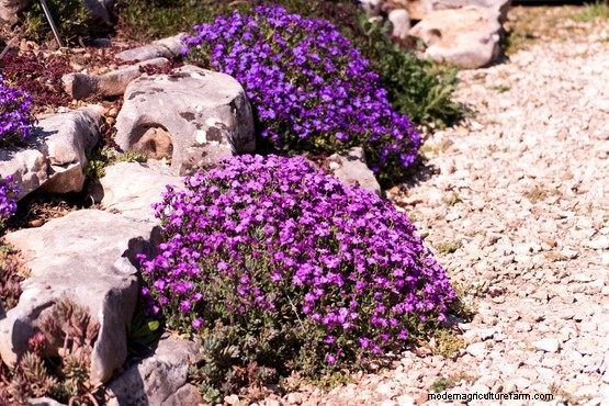 Aubretias are extremely popular rock garden plants, bearing low-growing carpets of colour in late spring and early summer. Grow in well-drained soil in full sun.