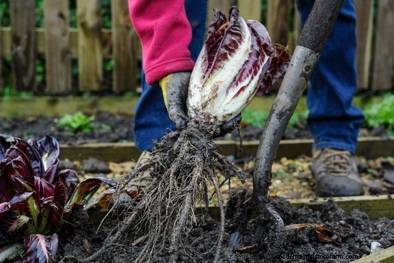 Non-forcing chicory can be cut from late summer until October. Look for fully formed hearts to the plants and cut them to just above soil level. The stumps will resprout if left so you can harvest more leaves later.