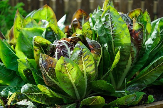 - ‘Palla Rossa’, RHS AGM – a ‘non-forcing’ chicory with heads of maroon leaves with prominent white veining, and a firm heart. A reliable variety that does not bolt