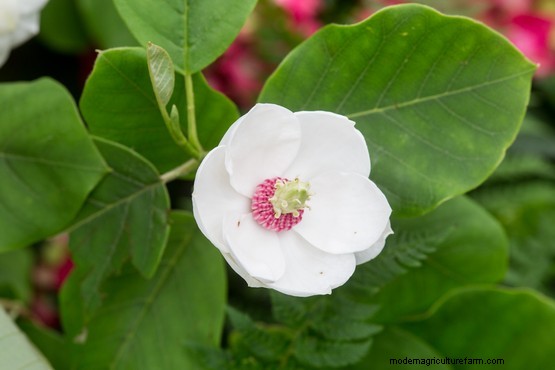 Magnolia sieboldii or the Chinese magnolia is a very hardy, deciduous species. The scented flowers are cup-shaped and large with deep maroon centres. They have a long flowering season from May to September and the foliage is attractive and glossy. A real statement tree.