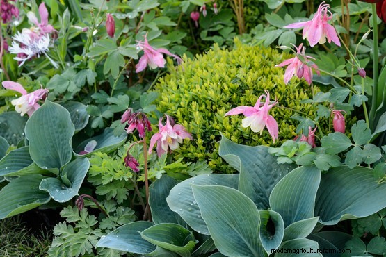 - Aquilegia vulgaris var. stellata ‘Nora Barlow’ – one of the oldest varieties, named after Charles Darwin’s granddaughter, with pink, green and white petals