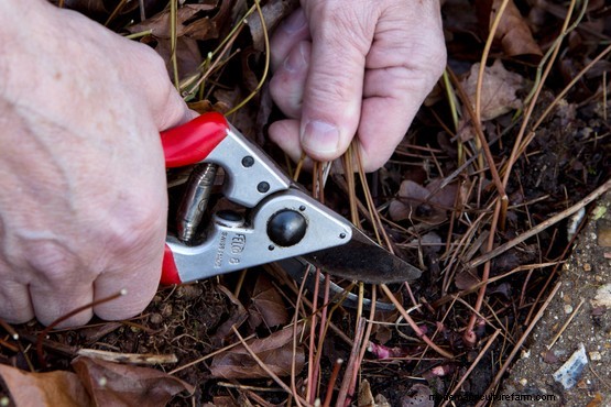 Many epimedium varieties are semi-evergreen and will keep their leaves through the winter months, which protects the crown of the plant. But by springtime, the leaves will be looking a bit tatty. For the best foliage display, cut back these old leaves before the flowers appear.