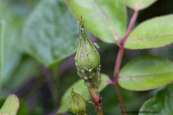 Rose powdery mildew is a fungus that produces airborne spores. Leaves and flower buds are covered in white, powdery fungal growth in summer. Often occurs when soils are dry, humidity is high and air movement poor. To prevent, water plants in dry summers. Very badly affected stems should be pruned out. Suitable fungicides are available.