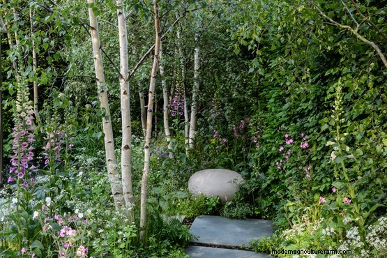 This small paved area (pictured) has been broken up by the addition of multi-stem birch trees, creating a serene and private ‘room’. Such an area could mark the transition from one garden ‘room’ to another, or contain a bench or other form of seating. Don’t be afraid to plant trees closely together to get the best effect. Take a look at some of the best trees for small gardens.