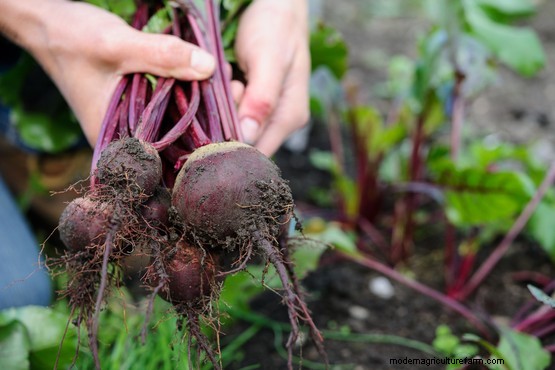 Harvest baby beets when large enough to eat. For bigger roots, picking at tennis-ball size is a good guide as older roots develop a woody texture.