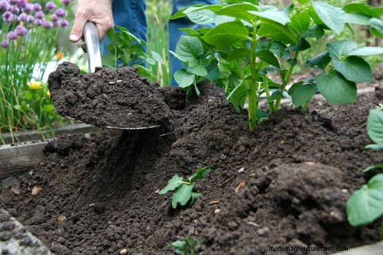 Drawing soil around the roots of a plant, to improve the yield. Often used when growing potatoes to block light and prevent greening of the tubers. See also ‘Yield’.
