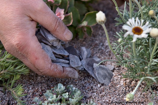 A thick layer of compost, manure, or leaf mould, which is placed on the surface of the soil. Applied to feed the soil, prevent weeds and conserve moisture. Bark chippings and stones are also used.
