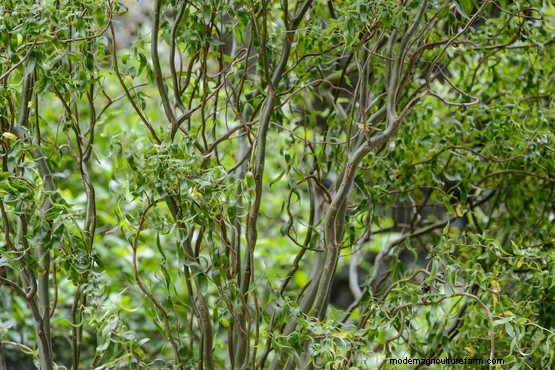 - Salix babylonica ‘Tortuosa’ – with its contorted branches and curly foliage, the corkscrew willow is a great feature plant all year round. The twisted stems are wonderfully sculptural in winter, contrasting well with the smooth bark, and are great for creating floral art. It can be grown as a large tree or pruned into a multi-stemmed version. The Royal Horticultural Society has given it its prestigious Award of Garden Merit (AGM).