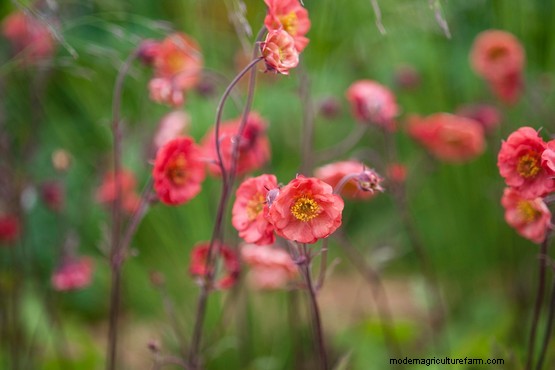 - Geum coccineum ‘Koi’ – an alpine type with a height of 30cm. Shocking orange flowers