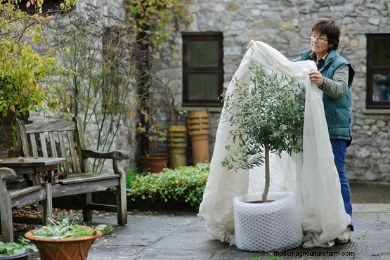 In severe winter weather, protect border-grown trees with horticultural fleece and a winter mulch around the base of the tree. For pot-grown trees, wrap the container with a layer of bubble wrap or horticultural fleece to protect the roots from freezing temperatures.
