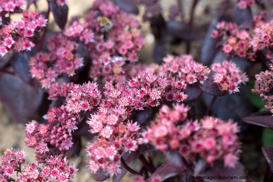 Border sedums, also known as ice plants, have now been reclassified as Hylotelephium. Easy to grow, these sun-loving perennials are a striking feature in late summer, when masses of flat, bright pink flowerheads appear on upright stems. The flowers are extremely attractive to late-flying butterflies and bees. They look especially good planted with grasses such as Stipa tenuissima.