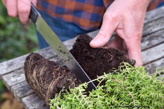 Stonecrops can be propagated by cuttings or offsets from the main plant. In spring or summer, take the plant out of its pot (or lift from the soil) and gently separate the offsets from the main plant. They should come away easily, complete with a piece of stem. Plant each offset in a small pot – it will grow into a new plant. Alternatively cut the plant in half, using a bread knife and replant both new plants.