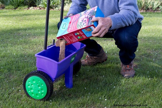 What: Spring feed or blood, fish and bone; autumn feed (may contain moss killer)