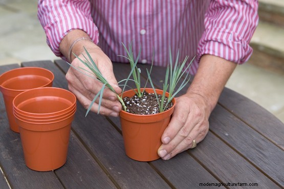 Remove the lower leaves, then push the cuttings into a pot of pre-watered cutting compost.