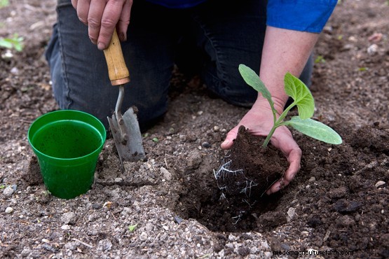 Transplant young plants into larger pots when big enough to handle. This enables the plants to develop their rootball and grow larger and more robust, before planting out. Then, once all danger of frost has passed in late May or early June, plant them out into their final growing positions. Choose a sheltered, sunny spot and dig in lots of garden compost or well-rotted manure into the soil before planting. Plant at least 90cm apart, according to the variety. Cover the surrounding soil with a mulch of garden compost to retain moisture. It’s a good idea to insert a bamboo cane next to each plant, so you will always be able to find its centre for watering, no matter how large each plant grows.
