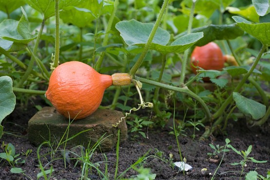 Pumpkins and squash are ready to harvest when the stem begins to crack and the skin hardens. Pick before the first frosts in October or November, cutting to retain as long a stem as possible.