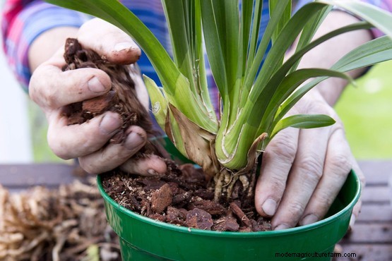Use a light, free-draining, open compost containing pumice and bark for cymbidiums. In this clip from Gardeners’ World, Monty Don gets expert advice from the RHS on how to re-pot a cymbidium orchid: