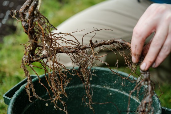 Before planting, give the roots a good soak in water. Space canes 45cm apart with 1.8m between rows. Just cover over the roots with about 5cm of soil. Keep any white buds at the stem base at soil level. Firm soil around each cane and water well. Canes are usually pre-pruned, ready to plant. If not, cut down to 15-22cm.