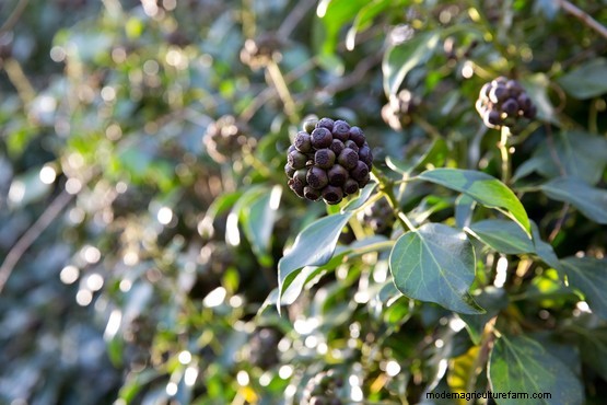 When ivy grows up, as opposed to horizontally, it will flower and fruit. The flowers are a nectar-rich, important autumn food for insects and the berries provide a rich source of protein for birds.