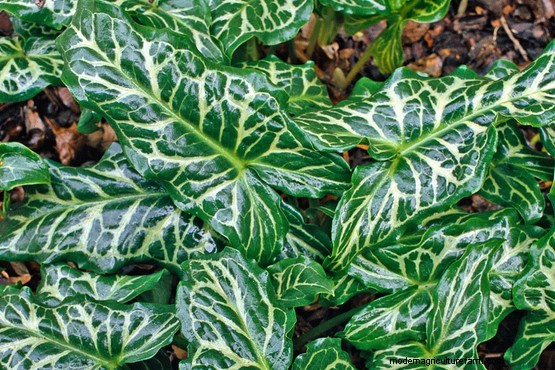 As the clustered orange berry-like fruits disappear (often taken by blackbirds), the foliage starts to appear. One glossy-green arrowhead follows another, from winter into spring, unfurling to reveal ivory ribs and veins. They seem impervious to even the most dreadful weather. The most majestic leaves, from the most mature tubers, have particularly pronounced markings and sensuous, undulating edges.