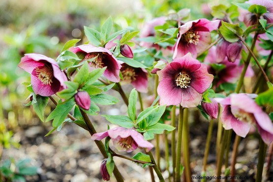 The splendid flowers of hellebores give mesmerising colours and patterns throughout winter. I’m partial to all of them, but am particularly drawn to Helleborus foetidus ‘Wester Flisk’, for its dramatic air and clusters of nodding flowers. Established plants produce several sturdy dark-red stems, each carrying bunches of lime-green bells edged with crimson.