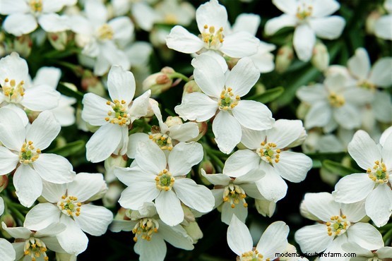 Choisya, or Mexican orange blossom, is an attractive, low maintenance evergreen shrub. Its glossy green leaves look good all year round and the white, star-shaped flowers in late spring and early summer smell deliciously of orange blossom. It prefers a sunny, sheltered spot.