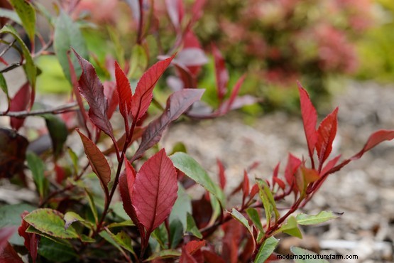 Photinias are low-maintenance, evergreen shrubs with glossy leaves – their name derives from the Greek word photeinos, which means shiny. Photinia x fraseri ‘Red Robin’ has bright red fresh leaves in spring, coupled with sprays of creamy white flowers. It can be grown in a sunny border or as a hedge.