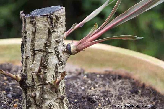 Cordyline plants gradually develop their characteristic trunk as they mature. The lower leaves yellow and die off to expose the growing trunk and should be gently pulled or trimmed off.