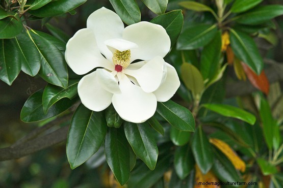 This is one of the most magnificent evergreen trees, bearing enormous glossy leaves with bronze undersides and large, cup-shaped white flowers in summer and autumn with a citrus fragrance. It does best in a sheltered and sunny site to be grown as a tree: in colder areas, grow against a wall. The variety ‘Exmouth’ is hardier than the species, while ‘Goliath’ has the largest flowers.