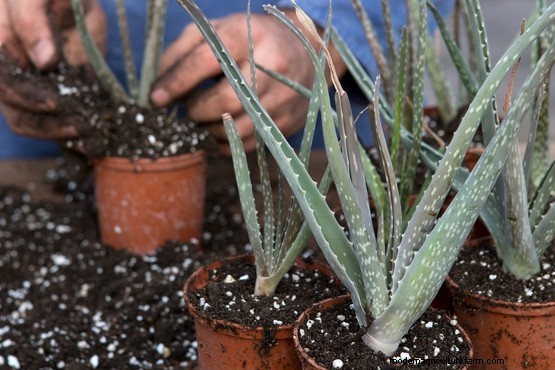 Aloes are slow growing so repot when the plant has outgrown its pot, usually every two or three years.