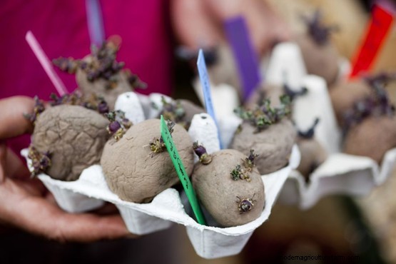 Potatoes are the ultimate failsafe vegetable you can grow at home – and you can grow them in the ground or in a large sack. To get them off to the best start, it’s best to ‘chit’ them. Buy seed potatoes online, as they’ll be disease-free, rather than using potatoes that you’ve bought to eat. Then, when you’re taking a break from work, unpack them and pop them in an empty egg box, or other container, on a bright windowsill. You’ll soon see shoots emerging. If you want to harvest your potatoes in summer, they should be in the ground by the end of May. If you want to harvest your own potatoes for Christmas, then plant them into a bag somewhere sheltered by the end of August.