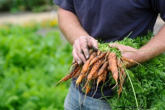 Carrots are perfect for growing in pots – simply sprinkle the seeds across the top of a large container of damp compost, and cover with a thin layer of compost. Put the pot somewhere bright and keep the compost moist. Tomatoes, salad leaves, and spring onions are all easy to grow in pots too. See our guides to how to grow carrots, tomatoes and other veg in pots.